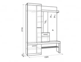 ШxВxГ: 1500x2116x354 мм.